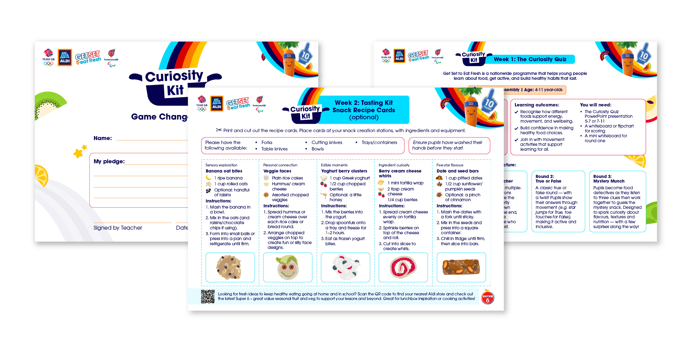 Get Set to Eat Fresh is part of the Get Set family of education programmes. Get Set to Eat Fresh, brought to life through Aldi, Team GB and ParalympicsGB, is a free nationwide education programme to help all young people aged 5–14 develop their love and curiosity about healthy, sustainable food and the knowledge and skills they need to cook nutritious, low-cost meals.