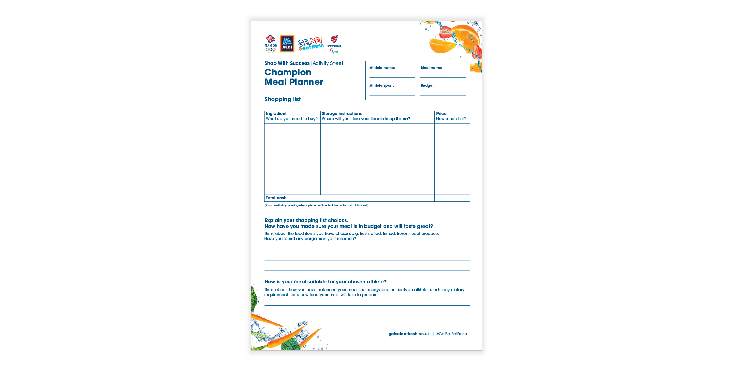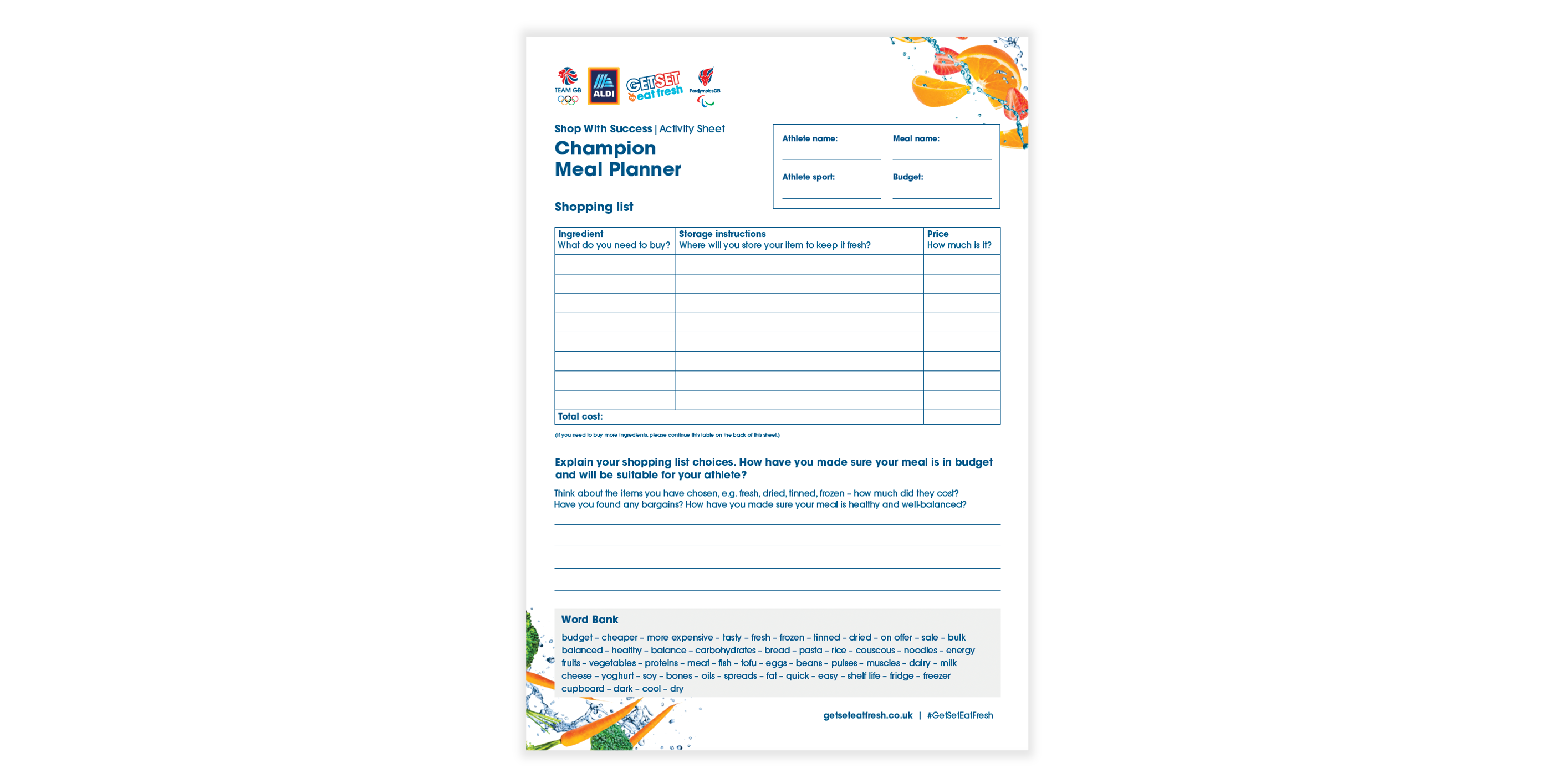 Get Set to Eat Fresh, a free education programme from Aldi, Team GB and ParalympicsGB, helps young people aged 5–14 develop their understanding and love of fresh, healthy food, the skills they need to cook for themselves and the desire to celebrate good food with friends and family. To support Holiday Activities and Food Programme facilitators, we’ve specially collated a range of our resources which support resilience, character and wellbeing and provide enriching activities to deepen their knowledge of health, nutrition and active lifestyles.