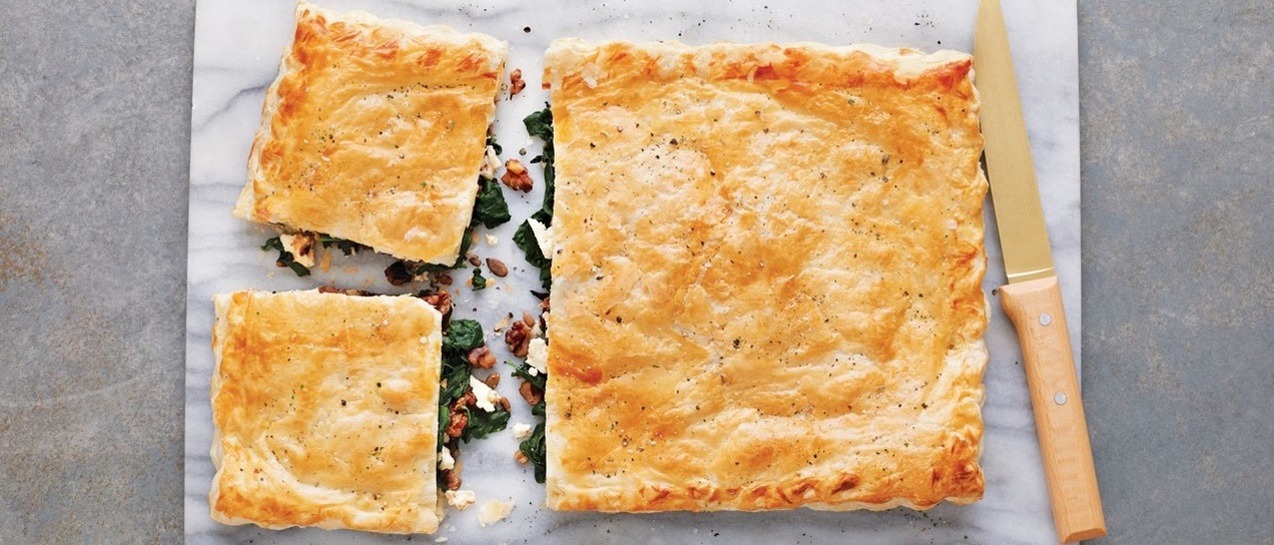 For any budding chefs, you can impress your friends and put your skills to the test with a spinach, feta and nut puff party pie. Yum!